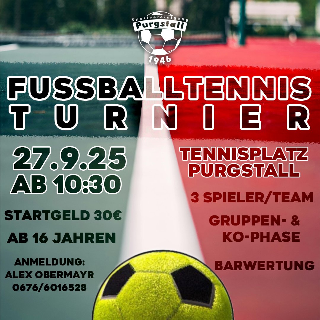 Auch heuer lädt die SVg ATP Metallbau Purgstall wieder zum Fussballtennis Turnier ein! Los geht es am Samstag, 27. September 2025 ab 10:30 Uhr. Infos laut Flyer👆🏻 Wir freuen uns auf euch⚽️🎾